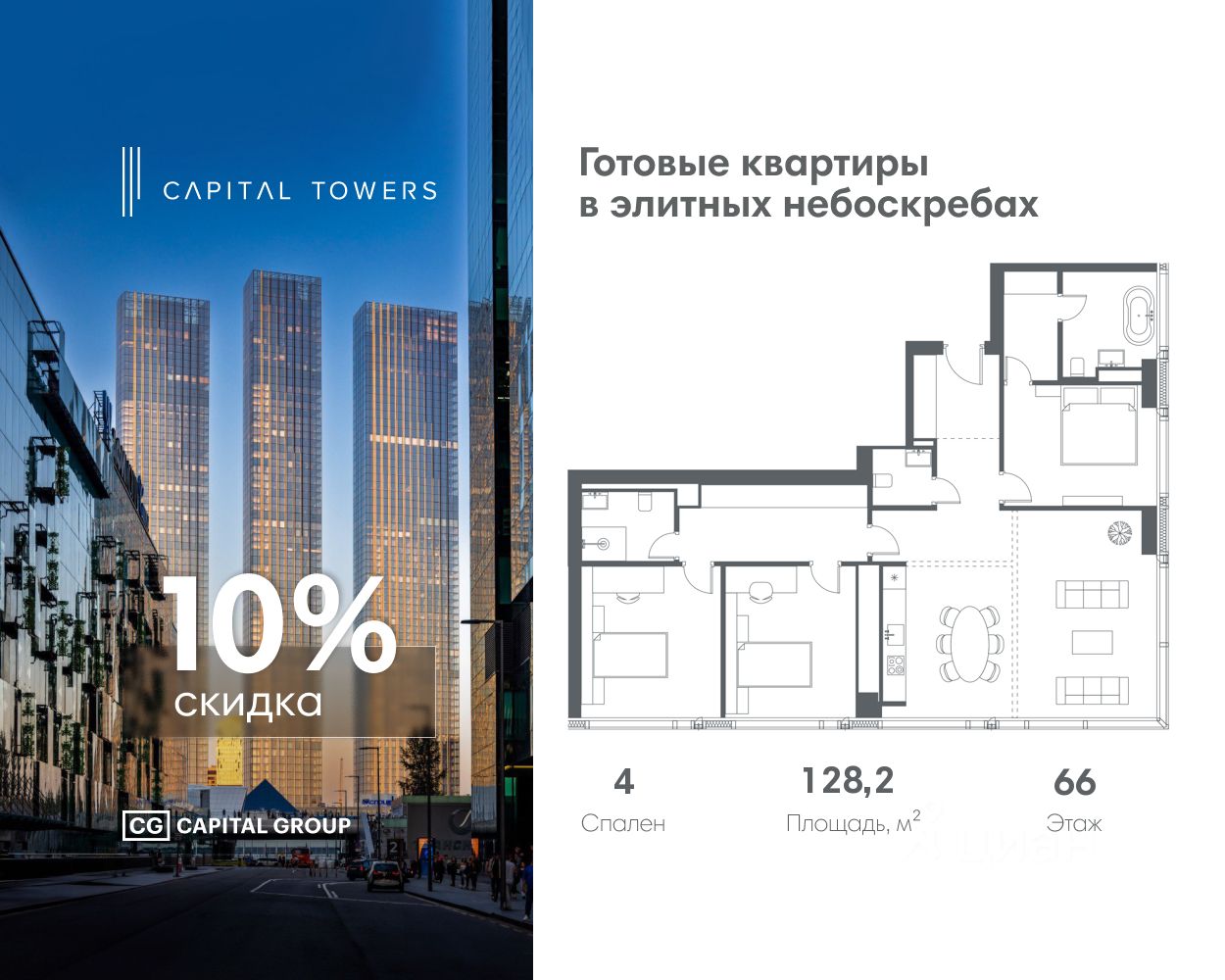 Capital Towers — это три современных жилых небоскрёба у Москва-Сити на берегу реки. Высота каждой башни — почти 300 метров, из окон открываются панорамные виды на центр Москвы, Москва-Сити, Лужники, МГУ и парк "Красная Пресня"