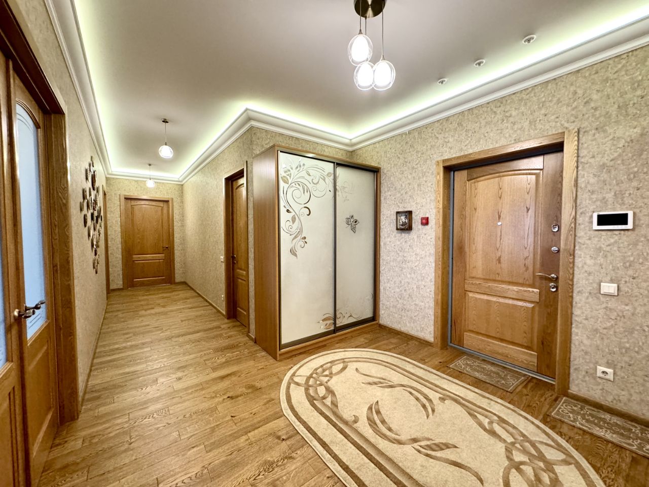 Удобная планировка: раздельные кухня и гостиная, две спальные комнаты с отдельным санузлом, гостевой санузел, отдельная комната-гардероб.