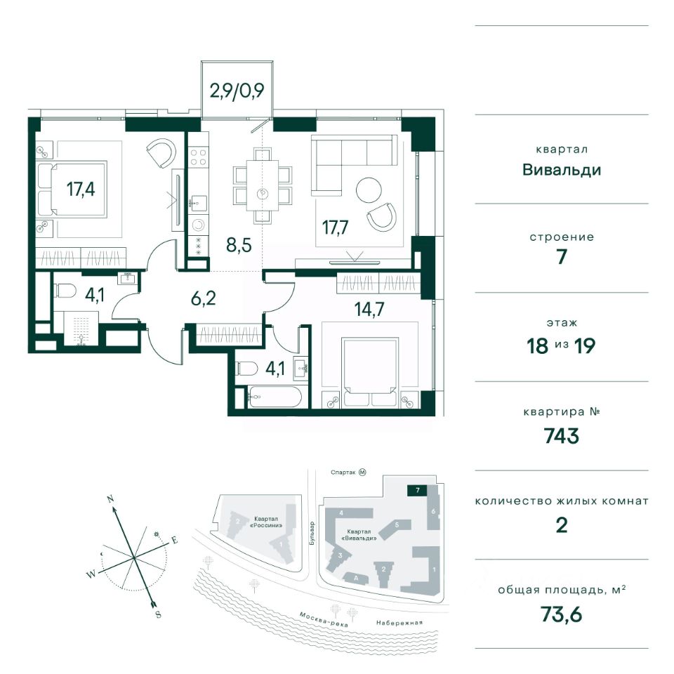 Общая площадь73,6 м²