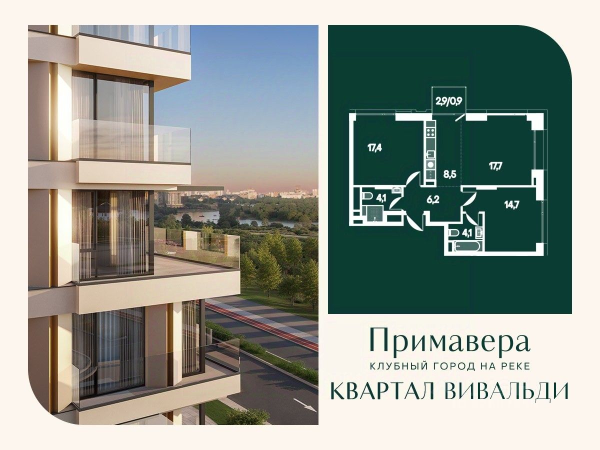 Клубный город на реке "Примавера" — это современный жилой комплекс премиум-класса, расположенный на первой береговой линии Москвы-реки в экологически чистом районе Покровское-Стрешнево. Под панорамными окнами квартир находится собственный экопарк с продуманной сетью прогулочных дорожек и современными детскими и спортивными площадками. За парком расположена набережная с собственным пляжем и зонами для отдыха. Клубный город на реке "Примавера" предлагает широкий выбор планировок для различных жизненных сценариев: от просторных однокомнатных квартир до пентхаусов и жилых помещений с террасами и патио. Выберите из 120 вариантов эргономичных планировок стандартного и евроформата. Из каждой квартиры открываются красивые виды на реку с углом обзора в 270 градусов. Дизайнерские лобби предлагают панорамный обзор на благоустроенный двор. Высокие потолки в 6 метров и качественная отделка создают атмосферу, схожую с пятизвездочными отелями. В "Примавера" есть всё необходимое для комфортной жизни в мегаполисе: • Образование для детей в шаговой доступности: 4 школы, 8 детских садов и развивающие центры с кружками и секциями. • Удобства на расстоянии приятной прогулки: супермаркеты, кафе, рестораны с верандами, салоны красоты, аптеки и многофункциональный центр для шоппинга и развлечений. • Умный дом: автоматизированное бесконтактное управление основными системами доступа и безопасности через мобильное приложение. Клубный город на реке "Примавера" выгодно сочетает комфорт городской жизни с близостью к природе. Живите в месте, где все создано для вашего удобства!