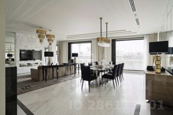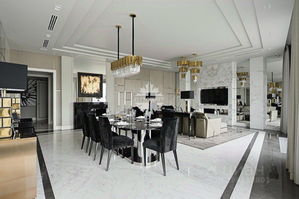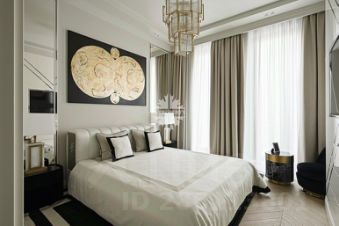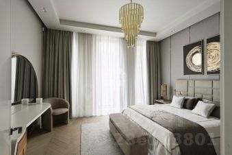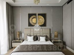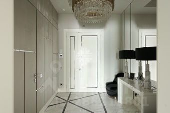 Планировка: гостиная-столовая, кухня с лоджией, мастер-спальня с гардеробной и санузлом, дополнительная спальня с гардеробной санузлом, гостевой санузел, хозяйственная комната.