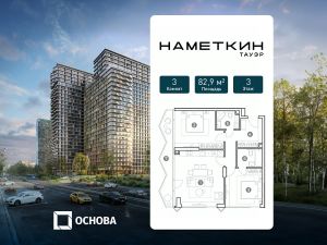 Продаются 3-к апартаменты площадью 82.9 кв.м. на 3-м этаже 29 этажного дома в "Наметкин Тауэр" от ГК ОСНОВА.