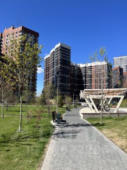 Красивое лобби , колясочная ( или хранение велосипеда), круглосуточное наблюдение , консьерж , оч хорошая УК, которая решает все вопросы через приложение . Огромный подземный паркинг, позволяющий также парковать машину посуточно и по часам.