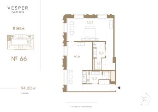 Продаются апартаменты с сервисом 5* отеля на 8-м этаже общей площадью 94 метров с 1-й спальней и кухней-гостиной. Дом готов.