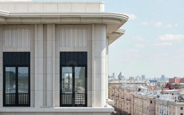 Проект органично вписывается в элегантный ряд исторических зданий Тверской, привнося свежий акцент своей современной интерпретацией классических форм и пропорций.