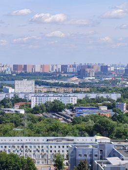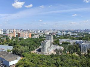 Из окна открывается великолепный обзорный вид на город, с красивыми современными зданиями , с зелёными островками музея-заповедника Коломенское и спокойной гладью Москвы реки .