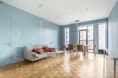 ID 64154: Эксклюзивно в компании INTERMARK. ЖК The Mostman. Четырехкомнатная квартира в ЖК The Mostman с эксклюзивным ремонтом. Отделка выполнена использованием высококачественных материалов и оборудования. Планировкой предусмотрены: прихожая с встроенными шкафами, гостиная-столовая, изолированная кухня с столом для завтраков, детская комната с 3 окнами, мастер-спальня с встроенным шкафом и с ванной комнатой, дополнительная спальня или кабинет, гостевая ванная комната, постирочная. Квартира частично меблирована. Кухня полностью наполнена немецкой встроенной техникой премиум-класса. В квартире поведена система увлажнения воздуха и кондиционирование. Дополнительно можно приобрести машино-место и кладовую.