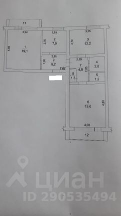 Общая площадь квартиры 74,3 кв.м.: Комнаты: 19,6 кв.м., 19,1 кв.м., 12,2 кв.м, кухня 7,9 кв.м. Раздельный санузел. В квартире имеется два больших балкона. Вместительная кладовая комната.