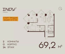 Продается просторная 2-комнатная квартира на 24 этаже жилого комплекса Indy Towers. Вид из окон: во двор. Срок сдачи: 4 кв. 2026 г.