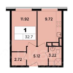 Общая площадь - 32.7 кв. М., 18 этаж, отделка черновая, установлены качественные стеклопакеты KBF, окна на север.