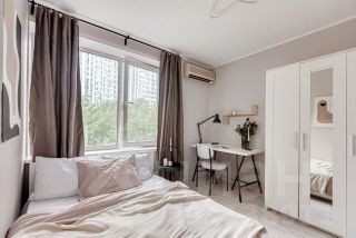 Полностью оборудованная кухня и стиральная машина. Мебель по согласованию. В двух спальных комнатах - кондиционеры. Во всех - пластиковые окна.