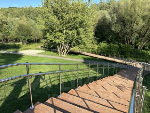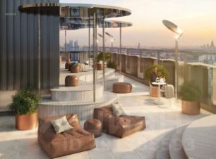 Благоустройство территории от бюро HAAS. Кресла, беседки, деревья и цветы, современные спортивные и игровые зоны, прогулочные аллеи. Также для жильцов будет уютно обустроена кровля стилобата, а на 39 этаже расположатся видовые террасы (в каждом корпусе).