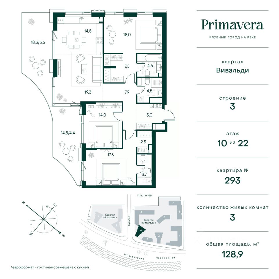 Клубный город на реке Primavera — это современный жилой комплекс премиум-класса, расположенный на первой береговой линии Москвы-реки в экологически чистом районе Покровское-Стрешнево. Под панорамными окнами квартир находится собственный экопарк с продуманной сетью прогулочных дорожек и современными детскими и спортивными площадками. За парком расположена набережная с собственным пляжем и зонами для отдыха. Клубный город на реке Primavera предлагает широкий выбор планировок для различных жизненных сценариев: от просторных однокомнатных квартир до пентхаусов и жилых помещений с террасами и патио. Выберите из 120 вариантов эргономичных планировок стандартного и евроформата. Из каждой квартиры открываются красивые виды на реку с углом обзора в 270 градусов. Дизайнерские лобби предлагают панорамный обзор на благоустроенный двор. Высокие потолки в 6 метров и качественная отделка создают атмосферу, схожую с пятизвездочными отелями. В Primavera есть всё необходимое для комфортной жизни в мегаполисе: • Образование для детей в шаговой доступности: 4 школы, 8 детских садов и развивающие центры с кружками и секциями. • Удобства на расстоянии приятной прогулки: супермаркеты, кафе, рестораны с верандами, салоны красоты, аптеки и многофункциональный центр для шоппинга и развлечений. • Умный дом: автоматизированное бесконтактное управление основными системами доступа и безопасности через мобильное приложение. Клубный город на реке Primavera выгодно сочетает комфорт городской жизни с близостью к природе. Живите в месте, где все создано для вашего удобства!