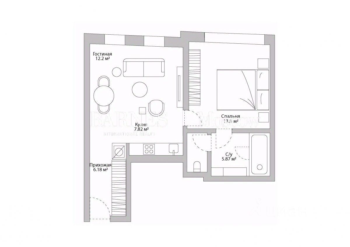 Стильный 2-комнтный апартамент площадью 49 кв.м. в авторском апарт-комплексе Roza Rossa в Хамовниках.