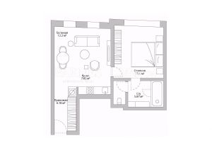 Планировочным решением предусмотрены: просторная гостиная с зоной кухни, спальня, санузел.