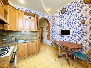 В шаговой доступности вся инфраструктура (школа, дет.сад, поликлиника, магазины, спортивная площадка, стадион, каток круглогодичный),во дворе фонтан и детские площадки , дом построен еще при СССР (1956г.) когда качеству уделяли должное внимание, железобетонные перекрытия и высокие потолки (3м), просторные комнаты, две больше 20кв.м., одна 18кв.м. кухня 9,5кв.м., просторные коридоры санузел раздельный-ванная 5,6кв.м.+ туалет 2,4кв.м., прихожая 16кв.м., общая пл. почти 100м., двойная входная дверь (металлическая дубовая),дубовый паркет ( требует реставрации), стеклопакеты, межкомнатные двери из массива (ольха), итальянская кухня из массива дуба со встроенной техникой ( холодильник, духовой газовая колонка (т.е. никаких отключений гор. воды) вдобавок есть отдельное подвальное помещение 6кв.м. для хранения.