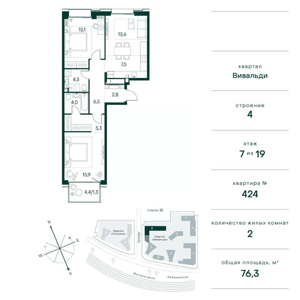 Общая площадь76,3 м²