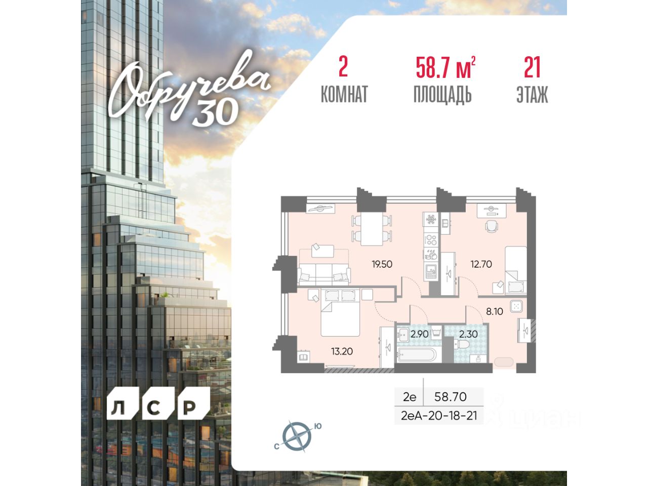 Продается 2-комнатная квартира общей площадью 58.7 кв. метров на 21 этаже дома бизнес-класса "Обручева 30". Дом располагается в 5 минутах ходьбы до станции метро "Калужская" и 10 минутах до станции метро "Воронцовская". Для автомобилистов удобный и быстрый выезд на улицы Обручева и Профсоюзную.