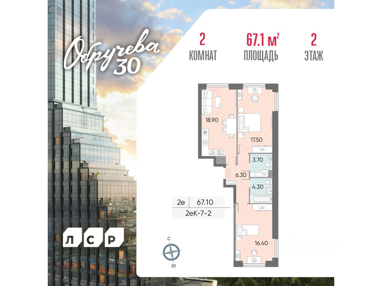 Продается 2-комнатная квартира общей площадью 67.1 кв. метров на 2 этаже дома бизнес-класса "Обручева 30". Дом располагается в 5 минутах ходьбы до станции метро "Калужская" и 10 минутах до станции метро "Воронцовская". Для автомобилистов удобный и быстрый выезд на улицы Обручева и Профсоюзную.