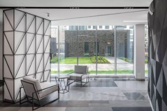 Огороженная территория, охрана, консьержи, закрытые дворы. Отделка холлов выполнена из натурального камня и дерева. Среди функциональных пространств — меблированные лаундж-зоны и переговорные комнаты, колясочные, гостевые уборные.