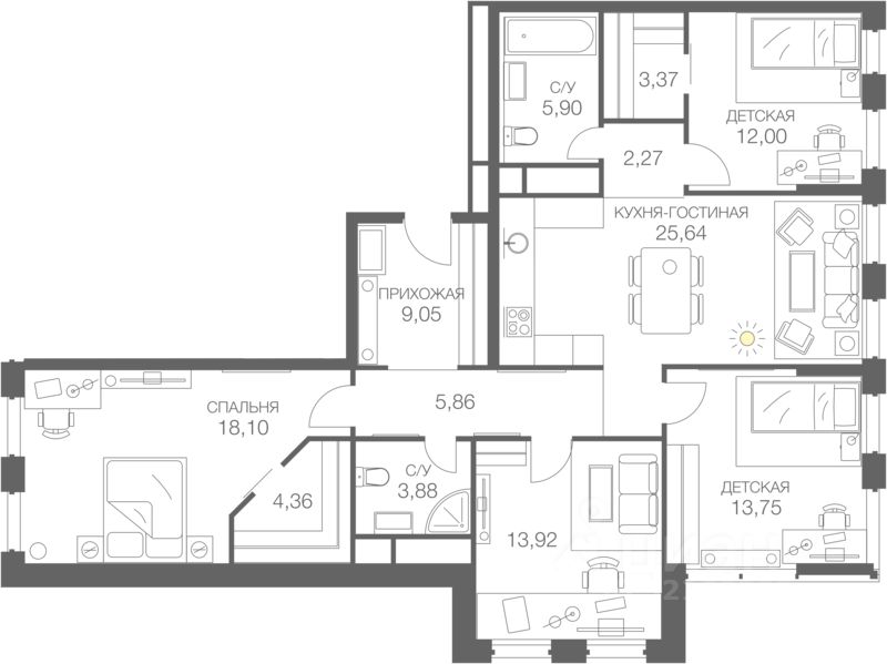 Предлагается Вашему вниманию 4х-комнатная квартира бизнес-класса, на 38-м этаже, без отделки, в Жилом комплексе HEADLINER".