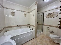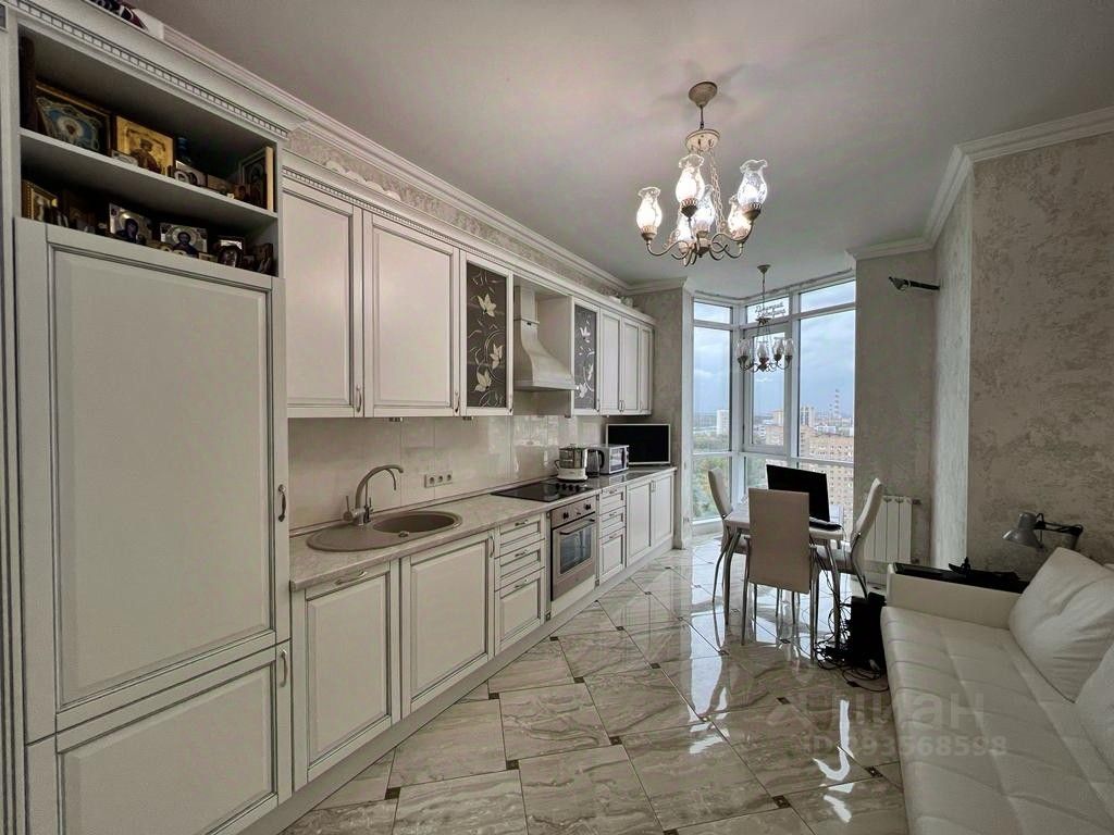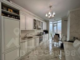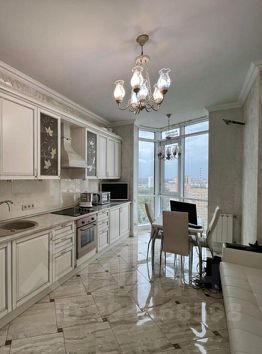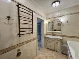 В квартире выполнен качественный ремонт с использованием дорогих качественных материалов. Керамогранитные полы с подогревом в прихожей, на кухне и ванной. Бесшовная отделка стен, венецианская штукатурка. На кухне представлена фреска Боттичелли. Есть гардеробная и просторный санузел (7.2 метра) с плиткой и сантехникой из Италии.