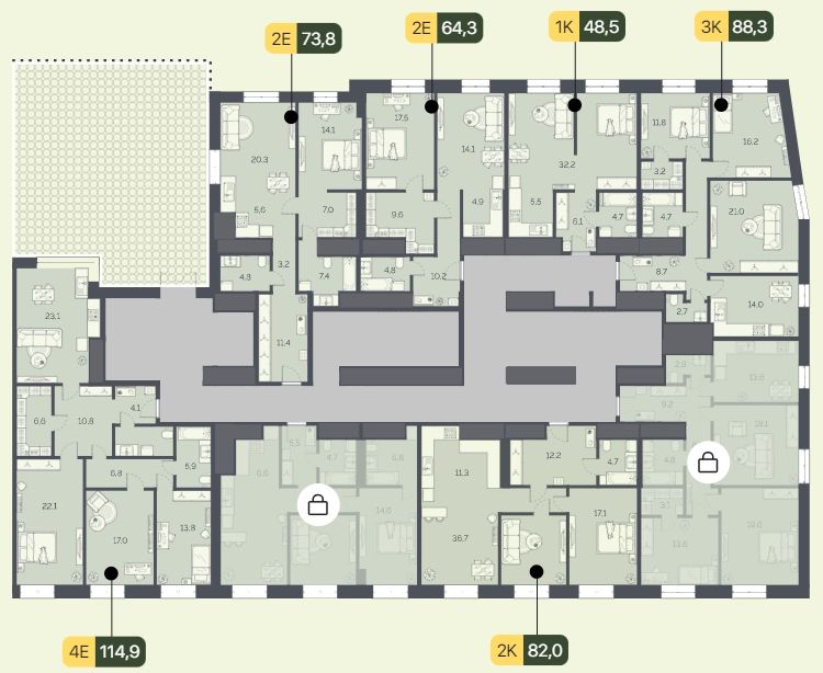 Общая площадь64,3 м²