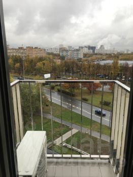 Два больших окна и балкон со стеклянной дверью в пол. Вид на Нахимовский проспект и Москва-сити.