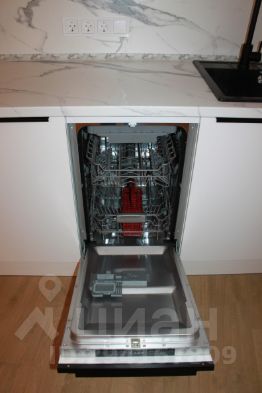 В кухне кухонный гарнитур со встроенной техникой:холодильник,посудомоечная машина,духовка,печь СВЧ,вытяжка,варочная панель с сенсорным управлением.