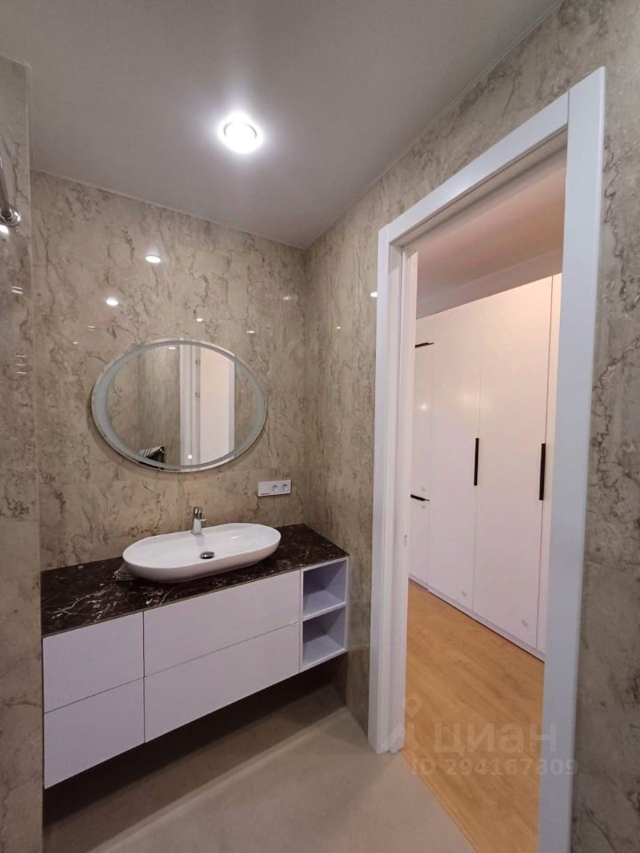 В ванной комнате вся сантехника Grohe немецкого производства,широкоформатный керамогранит,подвесная тумба под раковину с ящиками с системой Push open и керамогранитной столешницей.