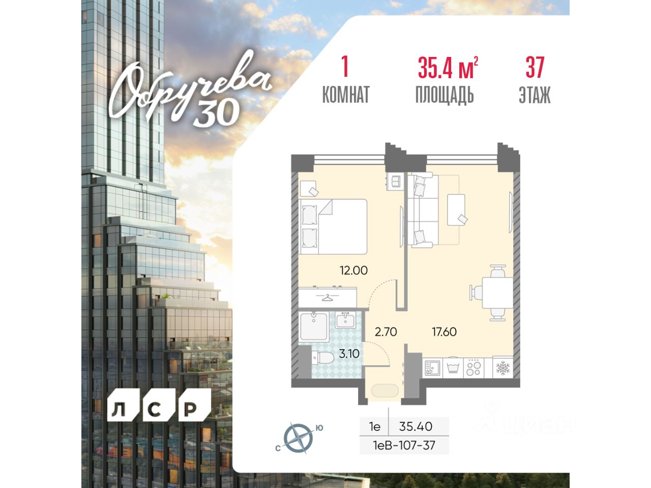 Продается 1-комнатная квартира общей площадью 35.4 кв. метров на 37 этаже дома бизнес-класса "Обручева 30". Дом располагается в 5 минутах ходьбы до станции метро "Калужская" и 10 минутах до станции метро "Воронцовская". Для автомобилистов удобный и быстрый выезд на улицы Обручева и Профсоюзную.