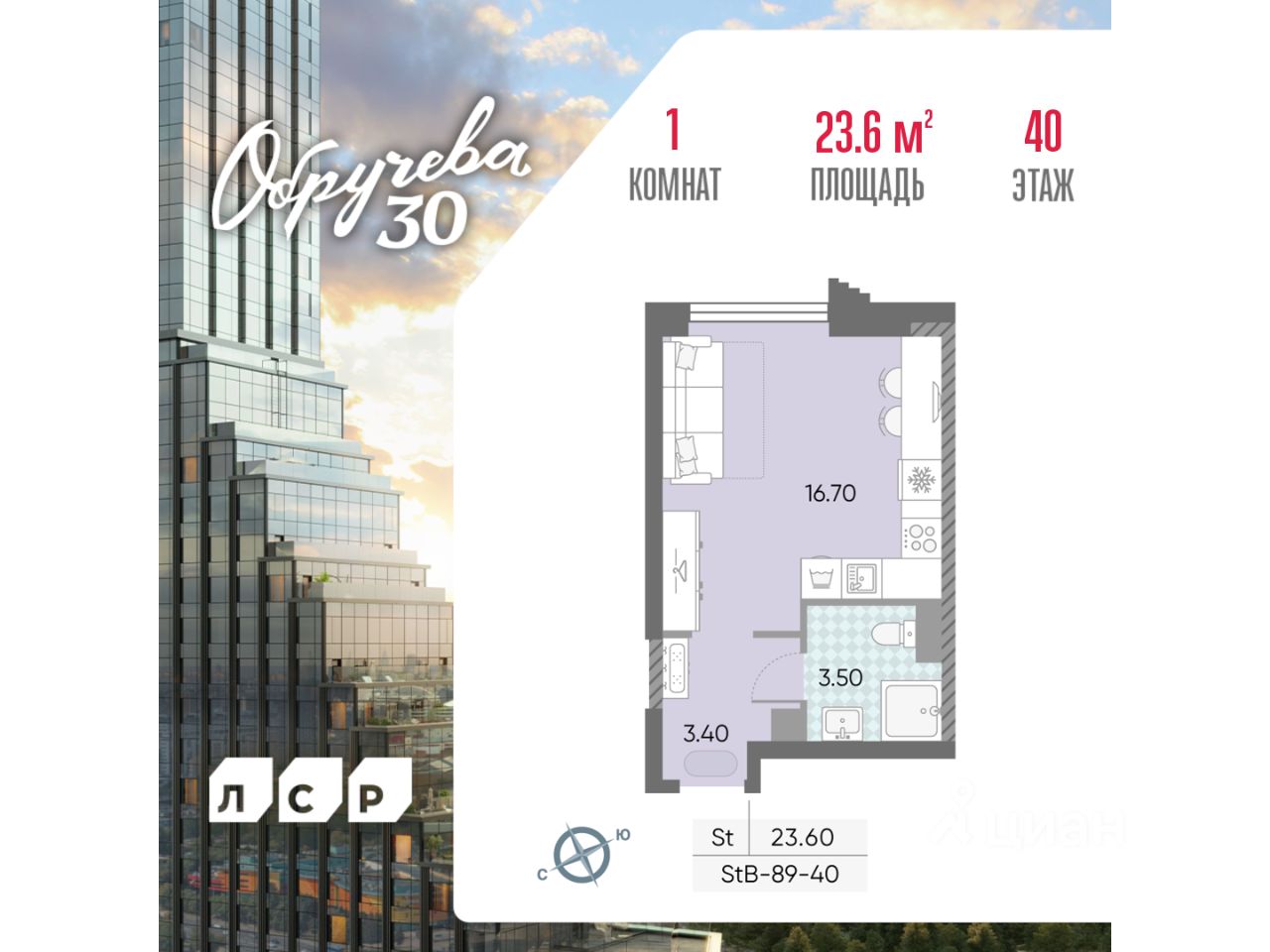 Продается квартира-студия общей площадью 23.6 кв. метров на 40 этаже дома бизнес-класса "Обручева 30". Дом располагается в 5 минутах ходьбы до станции метро "Калужская" и 10 минутах до станции метро "Воронцовская". Для автомобилистов удобный и быстрый выезд на улицы Обручева и Профсоюзную.