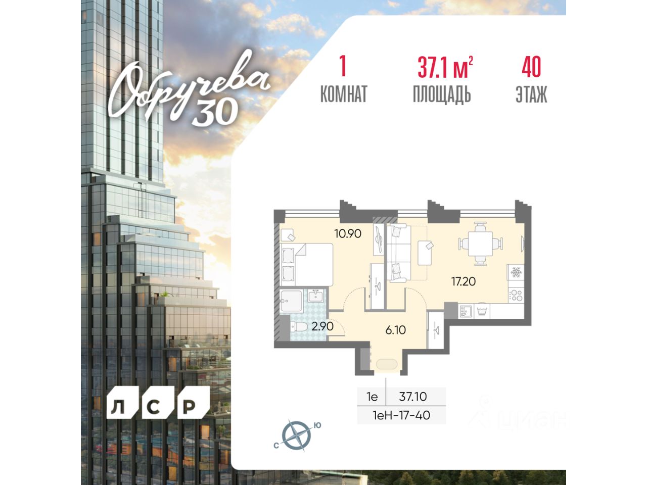 Продается 1-комнатная квартира общей площадью 37.1 кв. метров на 40 этаже дома бизнес-класса "Обручева 30". Дом располагается в 5 минутах ходьбы до станции метро "Калужская" и 10 минутах до станции метро "Воронцовская". Для автомобилистов удобный и быстрый выезд на улицы Обручева и Профсоюзную.