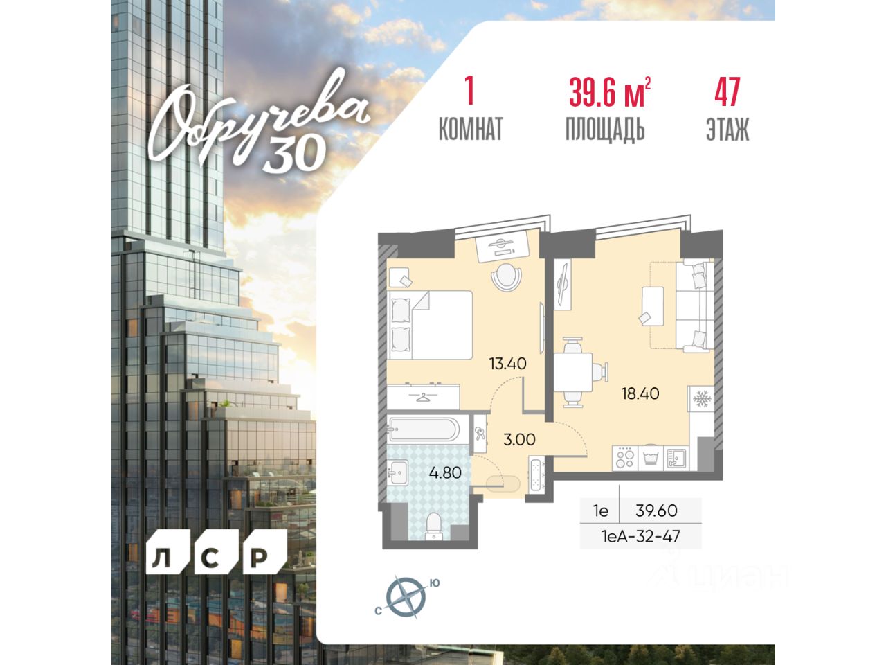 Продается 1-комнатная квартира общей площадью 39.6 кв. метров на 47 этаже дома бизнес-класса "Обручева 30". Дом располагается в 5 минутах ходьбы до станции метро "Калужская" и 10 минутах до станции метро "Воронцовская". Для автомобилистов удобный и быстрый выезд на улицы Обручева и Профсоюзную.