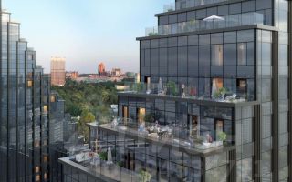 Внутри есть приватный двор с оригинальным ландшафтным дизайном, а также просторное лобби с потолками высотой до 10 метров, лаунж-зоной, мягкими диванами и огромным камином.
