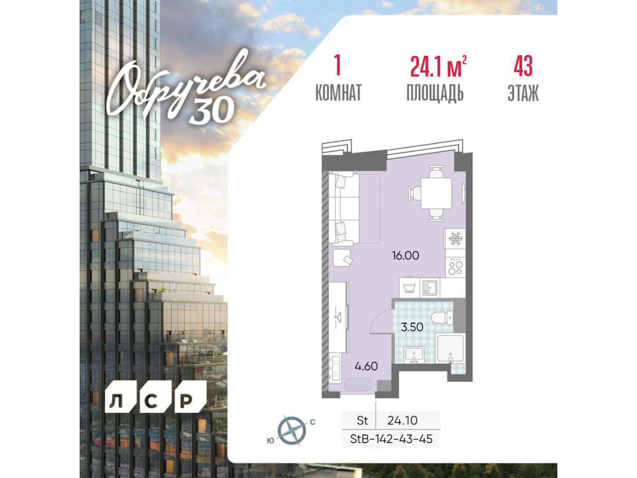 Продается квартира-студия общей площадью 24.1 кв. метров на 43 этаже дома бизнес-класса "Обручева 30". Дом располагается в 5 минутах ходьбы до станции метро "Калужская" и 10 минутах до станции метро "Воронцовская". Для автомобилистов удобный и быстрый выезд на улицы Обручева и Профсоюзную.