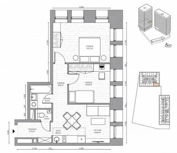 Евро-трешка на метро Сокол. Один собственник. Прямая продажа без альтернативы. Апартаменты бизнес-класса в ЖК B`aires (Байрес). Площадь 50,08 кв. м, расположенная в 1 корпусе на 3 этаже 22-этажного дома. Очень светлые апартаменты - 9 окон, свободная планировка, кухня-гостиная 10,66 кв.м, две спальни 10.8 и 14,17 кв.м, раздельный санузел, потолки 3м. Без отделки. Консьерж и охрана. Огороженная территория.