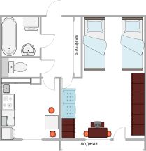 О квартире: Однокомнатная квартира общей площадью 40,5 кв.м. ( с учетом лоджии), просторная комната 20,8 кв. м., с выходом на застекленную лоджию, кухня 8,6 кв. м. Изолированный санузел в плитке. В коридоре размещен зеркальный шкаф- купе для всех необходимых вещей.