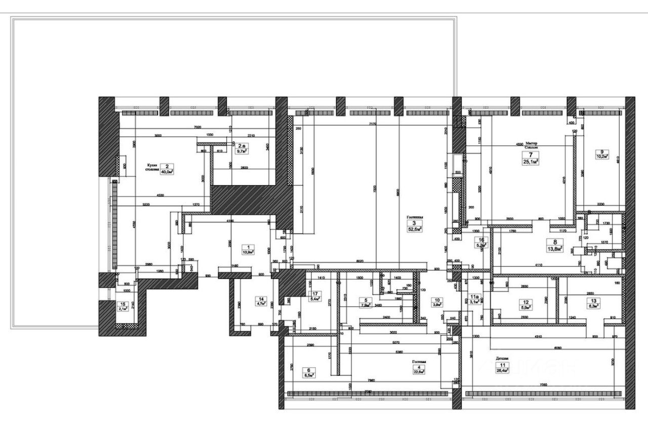 В Клубном доме Дворянское гнездо предлагается четырехкомнатный пентхаус с террасой без отделки. Единственный пенхаус на этаже с собственным лифтом. Высота потолка составляет 3,3 м. Планировка: кухня-столовая, гостиная с дровяным камином, 3 спальни со своими ванными комнатами, гардеробные, прачечная. Из окон открываются панорамные виды на исторический центр Москвы, МИД.