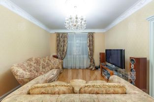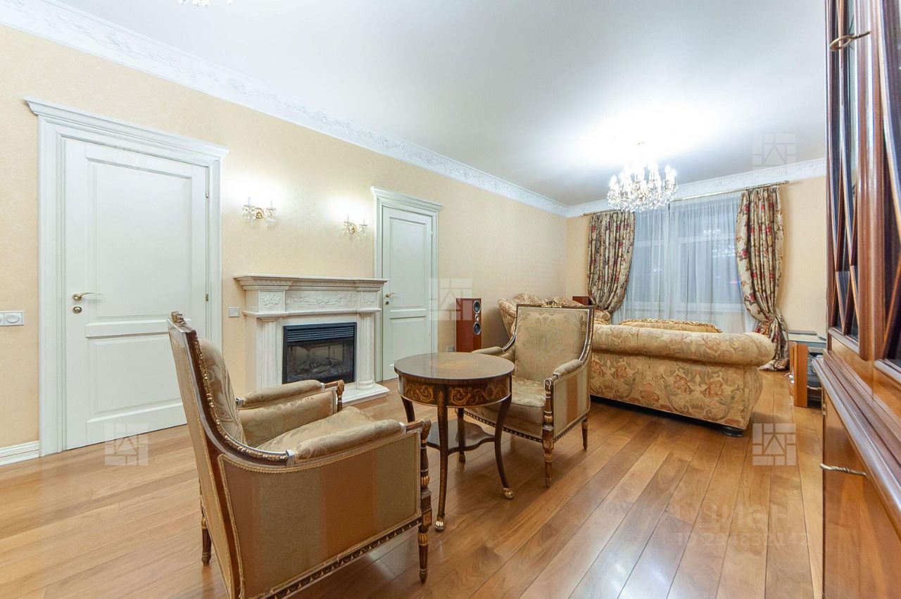 Функциональная планировка идеально подойдет для семьи с детьми: просторная гостиная с камином, отдельная кухня с застекленным балконом, четыре спальни, два санузла, гардеробная комната. Окна квартиры ориентированы на две стороны- улицу и двор.