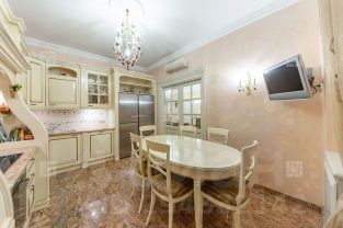 В квартире выполнен качественный ремонт по индивидуальному дизайн проекту. Использованы качественные материалы: итальянский мрамор, паркет из американского ореха, эффектная гипсовая лепнина, сантехника премиальных марок. Квартира обставлена дизайнерской мебелью: Provasi. Franchesco Molon, кухня от известного итальянского бренда Arca Mobili.