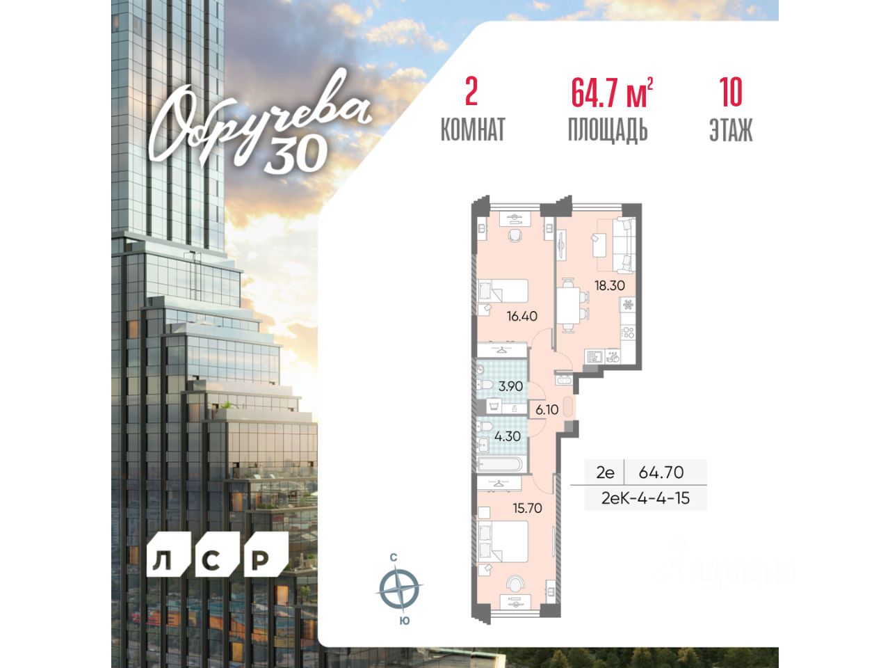 Продается 2-комнатная квартира общей площадью 64.7 кв. метров на 10 этаже дома бизнес-класса "Обручева 30". Дом располагается в 5 минутах ходьбы до станции метро "Калужская" и 10 минутах до станции метро "Воронцовская". Для автомобилистов удобный и быстрый выезд на улицы Обручева и Профсоюзную.