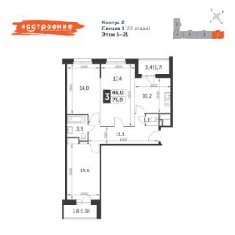 Продаётся 3-комнатная квартира в сданном доме (Красная Сосна, 3 (Корпус 2)), срок сдачи: III-кв. 2021, общей площадью 76 кв.м., на 10 этаже. ЖК "НАСТРОЕНИЕ" строится ФСК Лидер на северо-востоке Москвы на границе Ярославского и Ростокинского районов, рядом с парком "Лосиный остров". Комплекс располагает быстрой транспортной доступностью от центра и основных деловых районов столицы.
