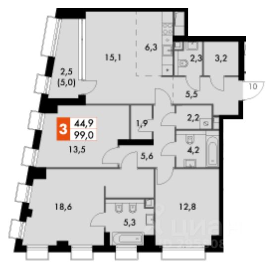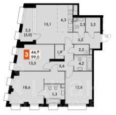 - лоджия (с коэффициентом) (кв.м.) 2,5
