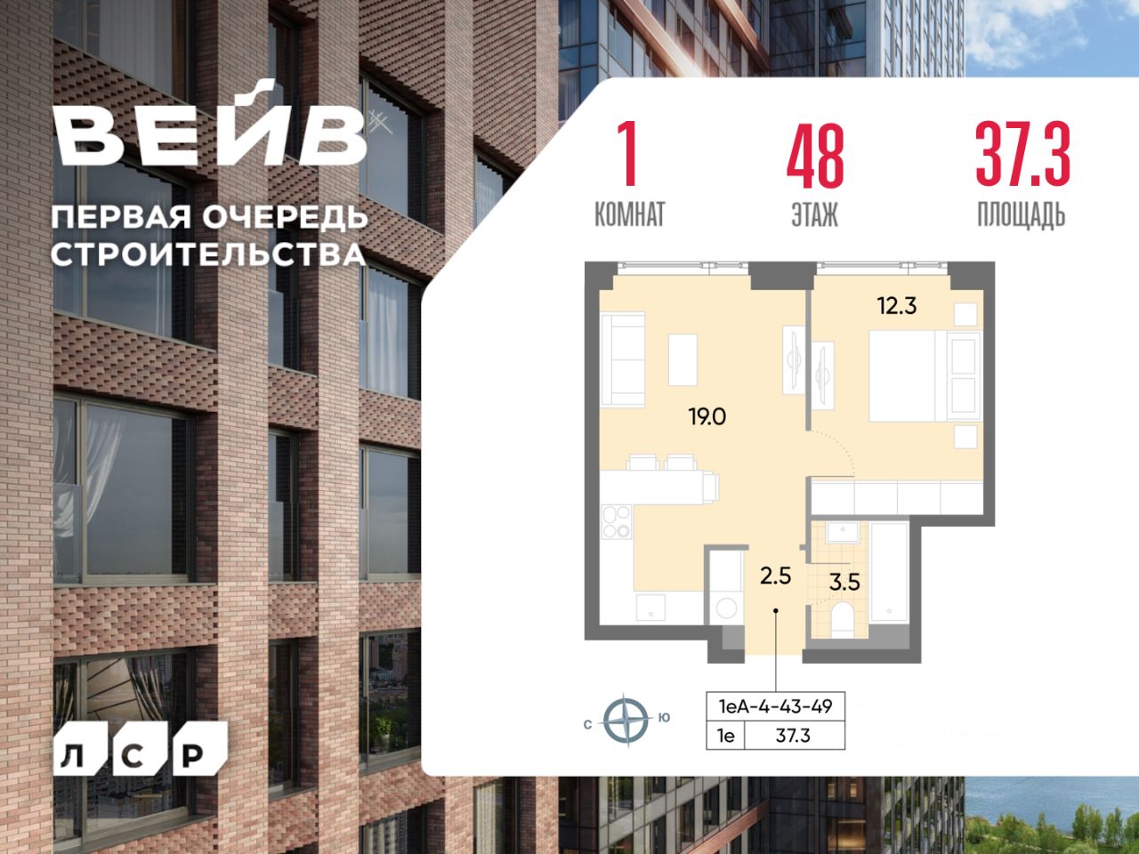 Продается 1-комнатная квартира общей площадью 37.3 кв. метров на 48 этаже жилого комплекса ВЕЙВ. Комплекс располагается на юге Москвы в районе Москворечье-Сабурово. В пешей доступности расположены станция МЦД "Москворечье" и станция метро "Борисово". Для автомобилистов есть удобное сообщение с Каширским шоссе.