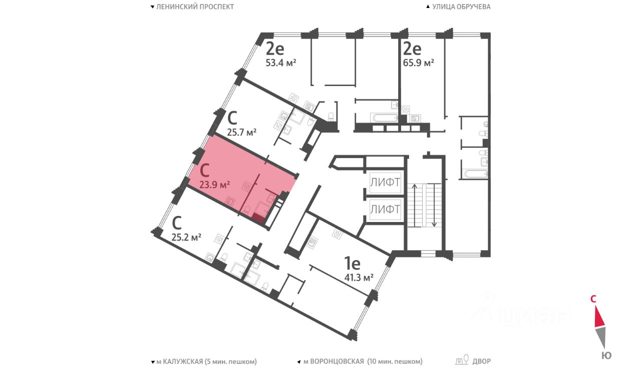 Продается квартира-студия общей площадью 23.9 кв. метров на 13 этаже дома бизнес-класса "Обручева 30". Дом располагается в 5 минутах ходьбы до станции метро "Калужская" и 10 минутах до станции метро "Воронцовская". Для автомобилистов удобный и быстрый выезд на улицы Обручева и Профсоюзную.