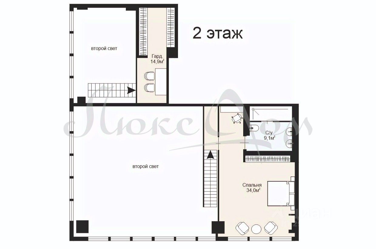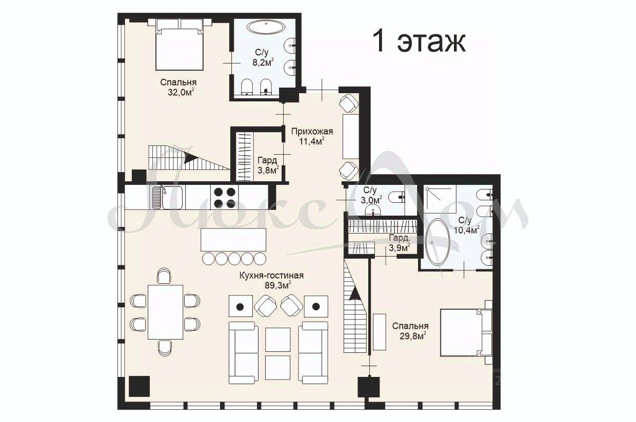 -мастер-спальня с потолками 4,9 м, со своей ванной комнатой и гардеробной