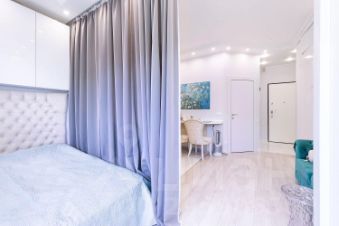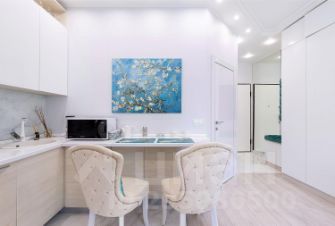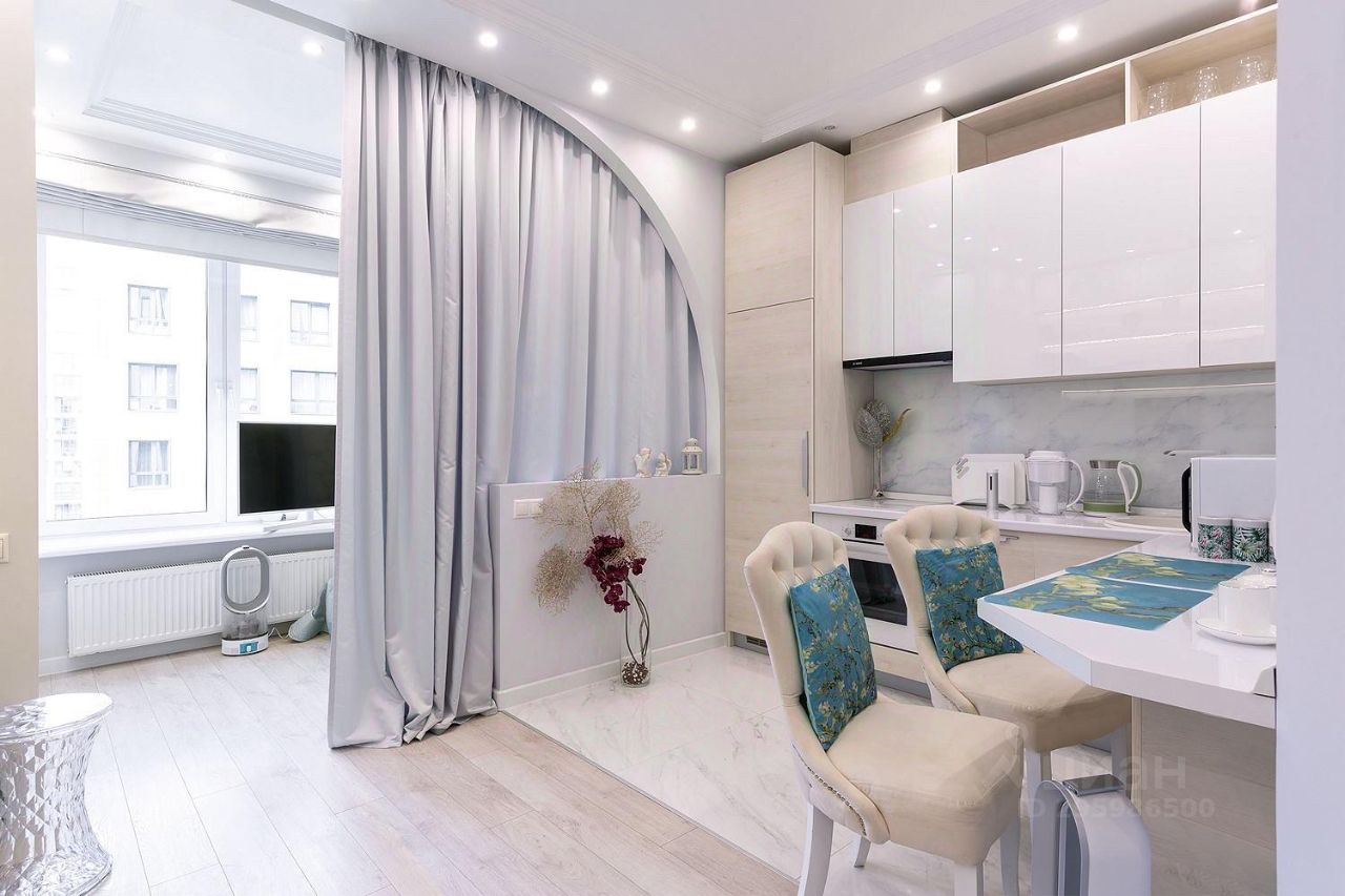 Разделена зона кухни - гостиной и спальной комнаты. Есть удобная гардеробная. Полноценная ванная комната. Много шкафов для вашего удобства.