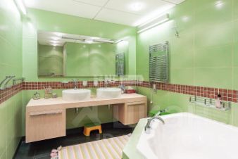 Выполнена отделка в современном стиле с использованием премиальных материалов. Пространство оборудовано дизайнерской мебелью, системой "умный дом", подогревом полов, центральным кондиционированием и деревянными окнами. Кухня оснащена премиальной техникой Guggenau и Kuppersbusch.