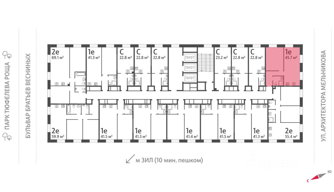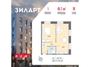 Продаётся 1-комнатная квартира в доме 18 (ЗИЛАРТ ГРАНД) ЖК "ЗИЛАРТ" общей площадью 45.7 кв. метров на 18 этаже.